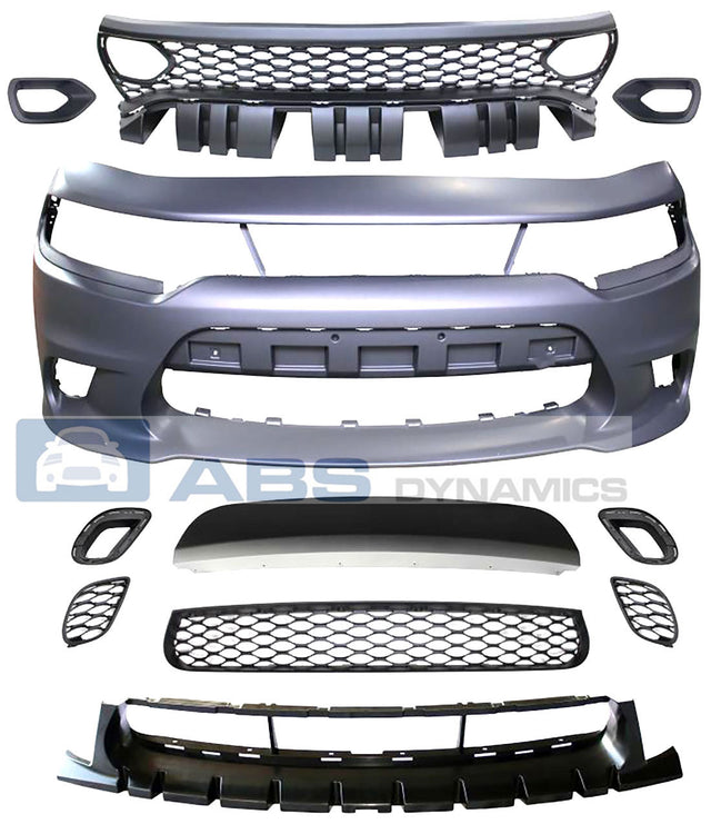 Description: 15-21 DODGE CHARGER SRT-8 HELLCAT STYLE FRONT BUMPER W/ SP AIR DUCT GRILL